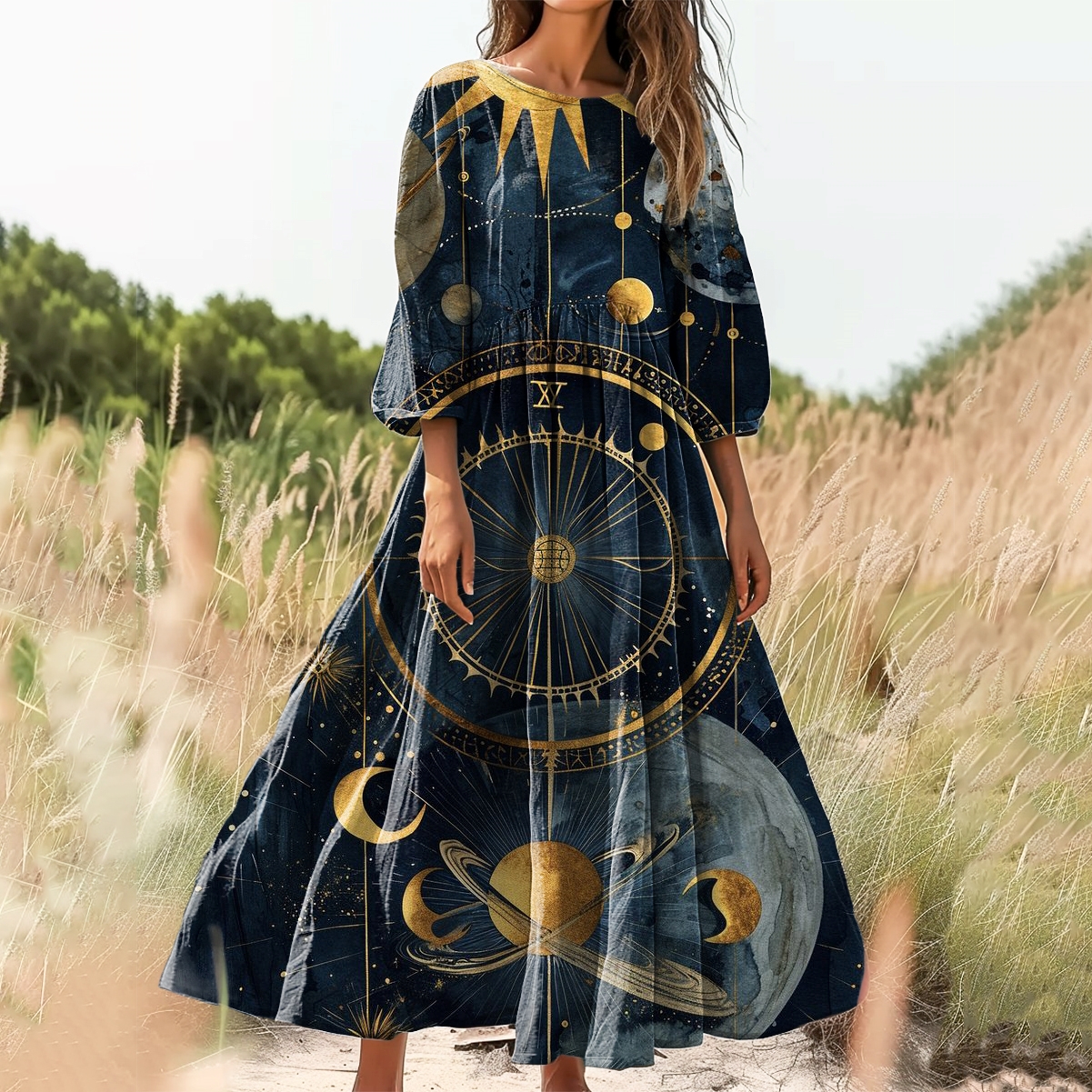 Women's Planet Universe Pattern Art Print Cotton Crew Neck Dress