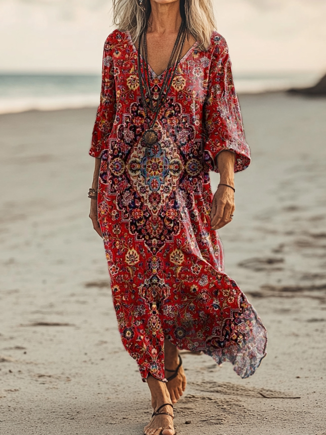 Women's Retro Ethnic Totem Art Print Pocket Cotton Dress