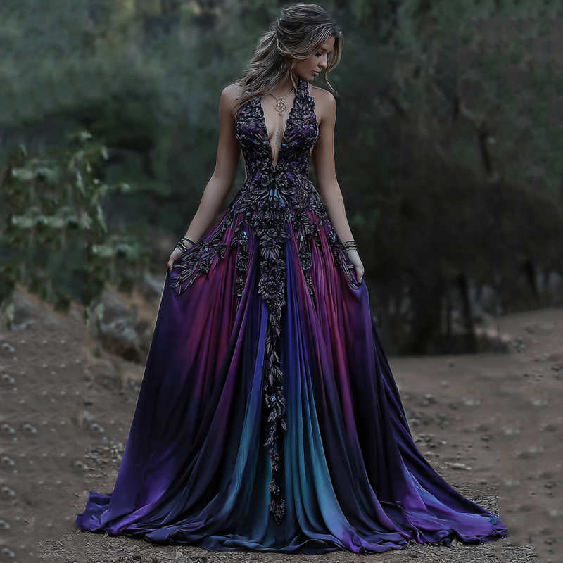 Women's Viking Vintage Celtic Gradient Floral Art V-neck Maxi Dress