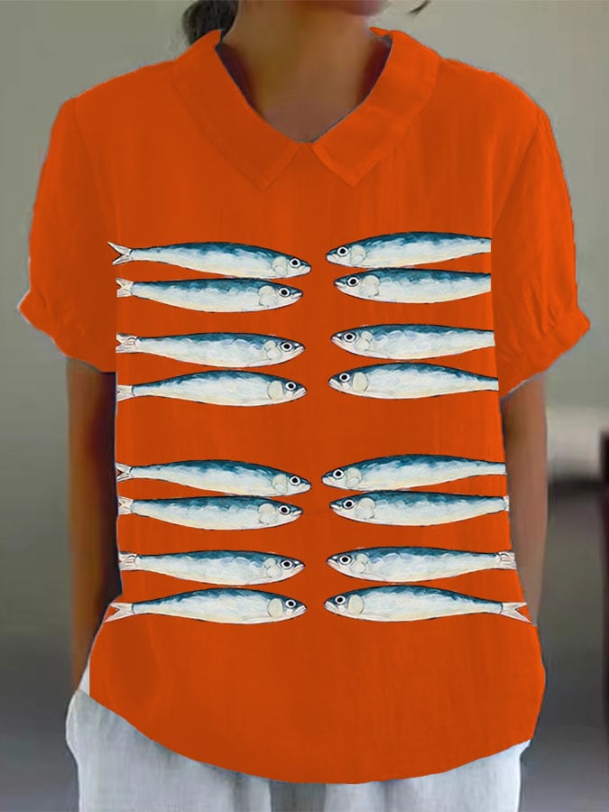 Women's Vintage Fish Art Print Casual Top