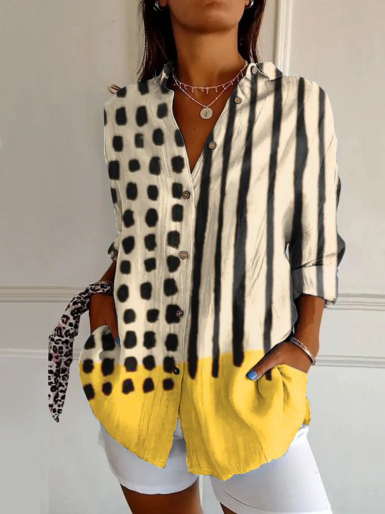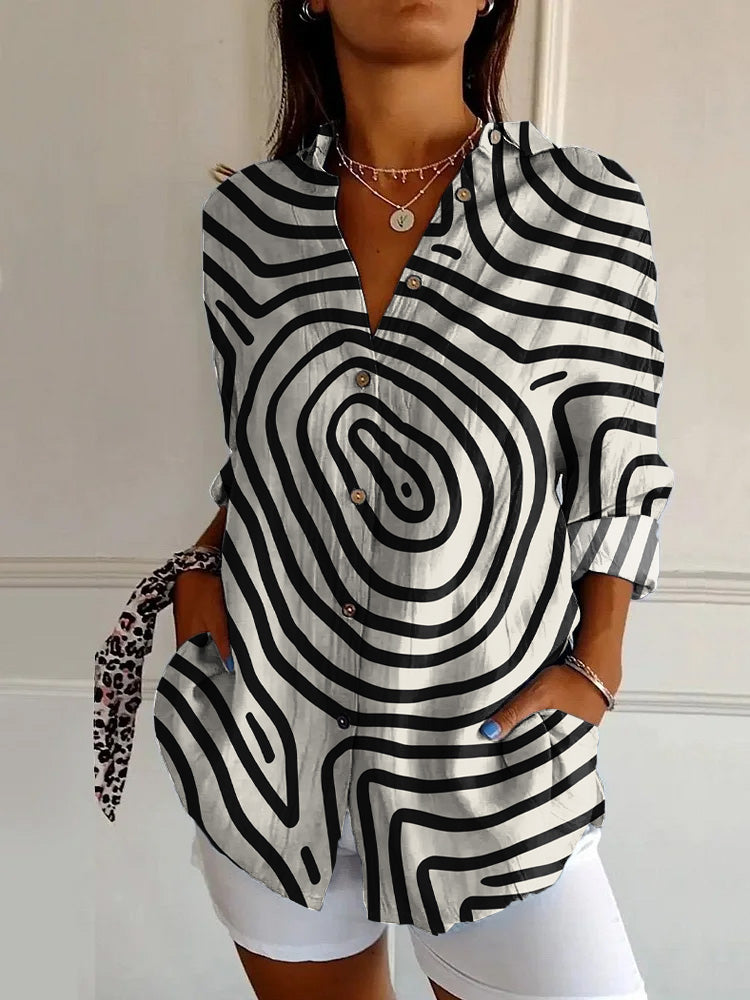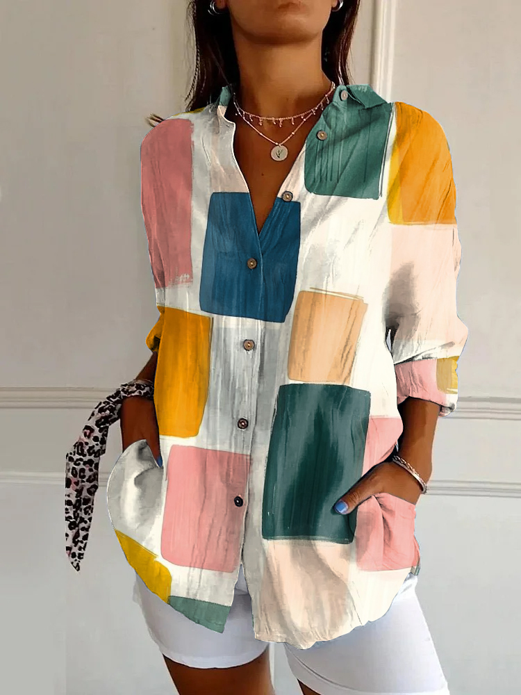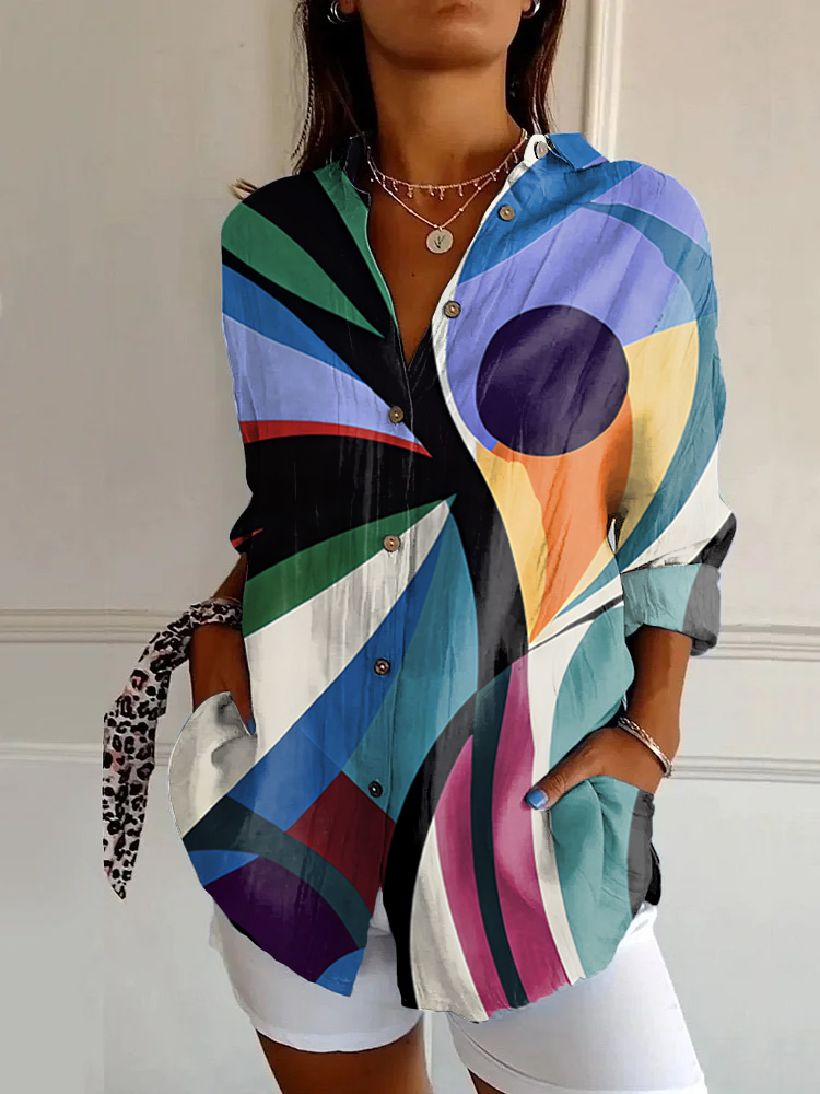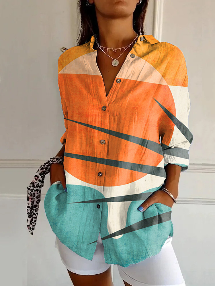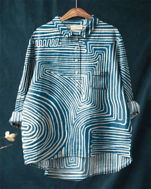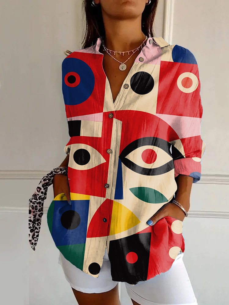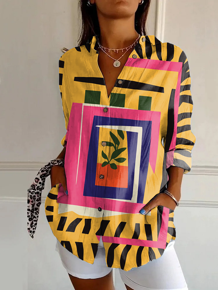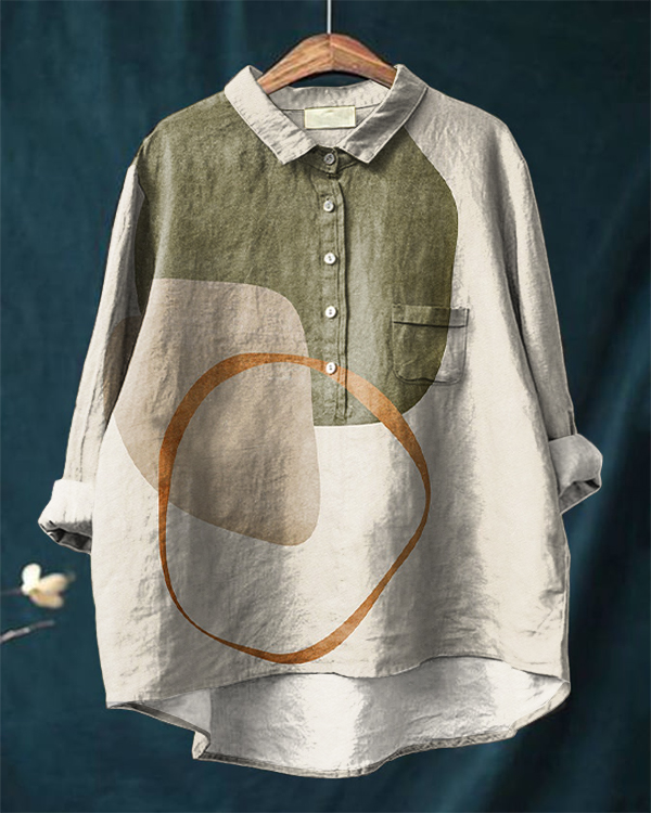 Women's Abstract Geometry Art Print Casual Cotton And Linen Shirt