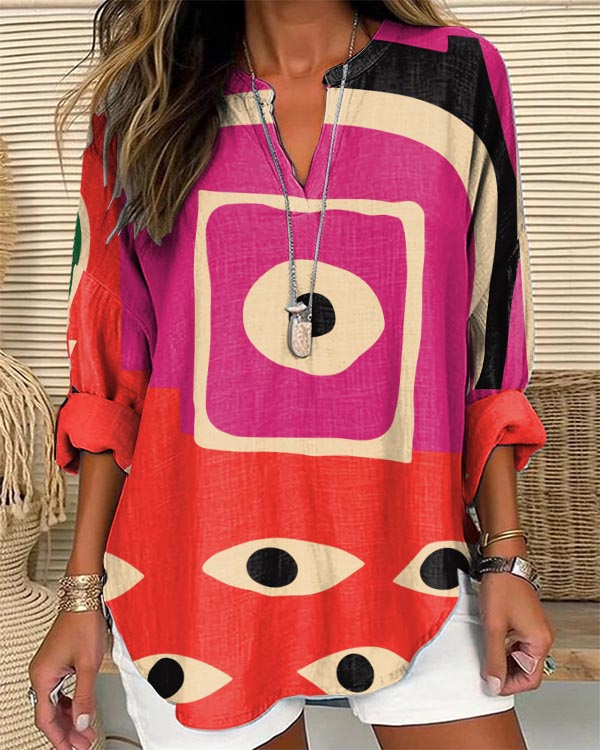 Vintage Abstract Art Print Casual Long-sleeved Shirt