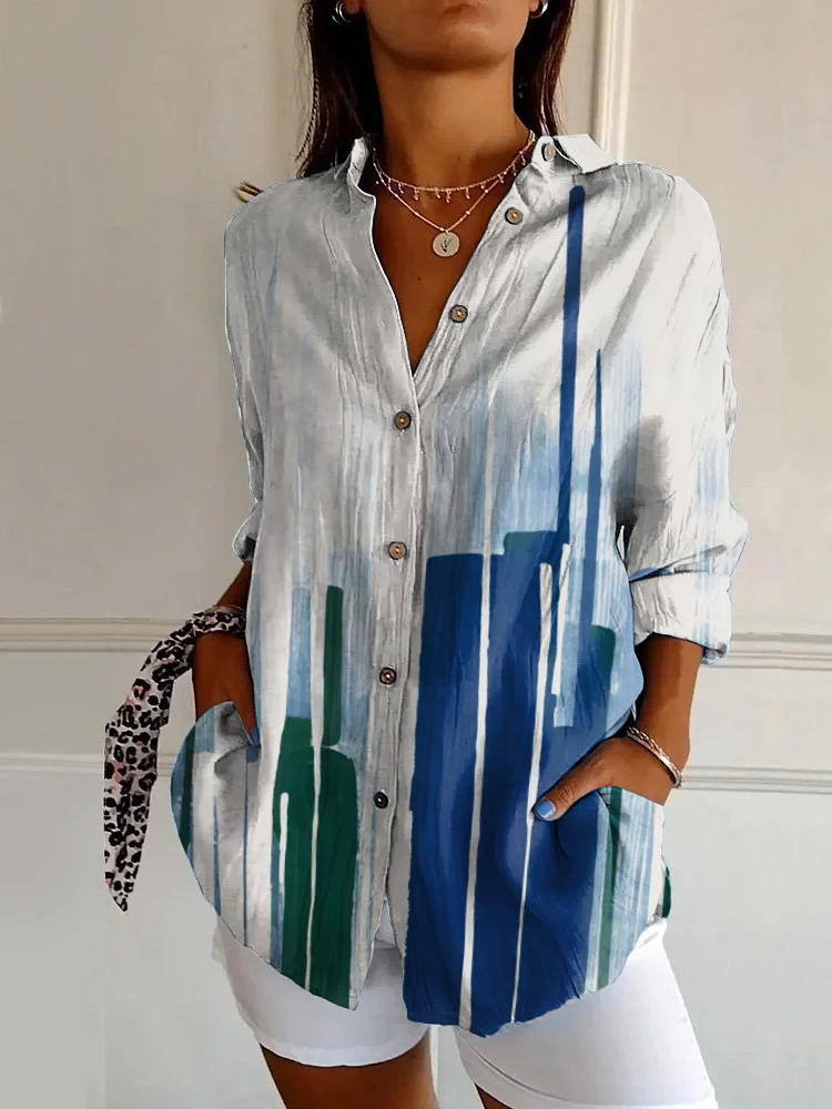 Women's Abstract Print Art Casual Cotton And Linen Shirt