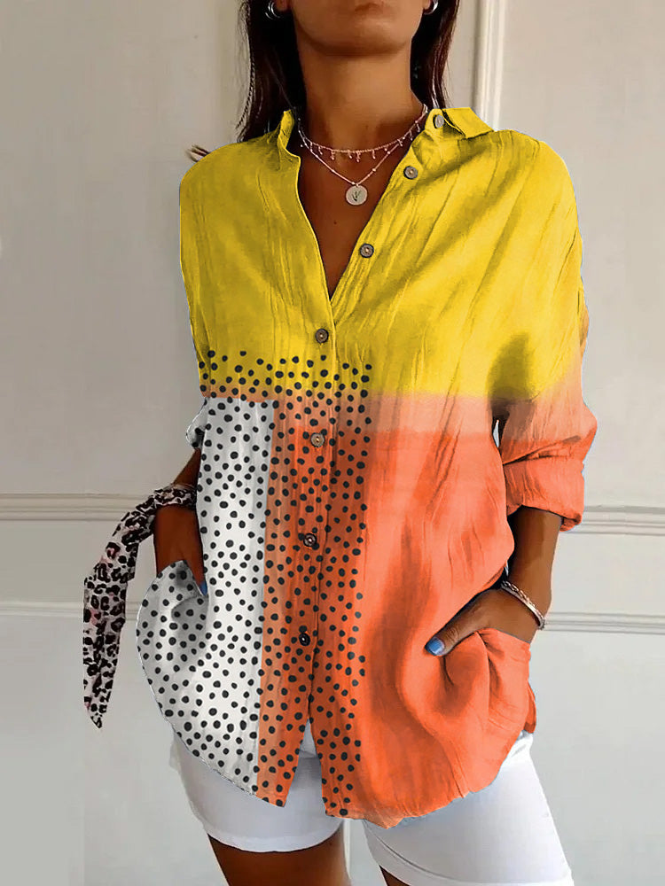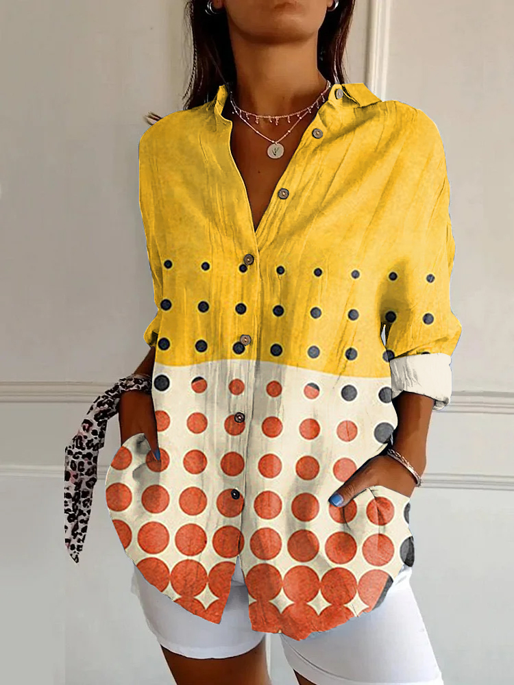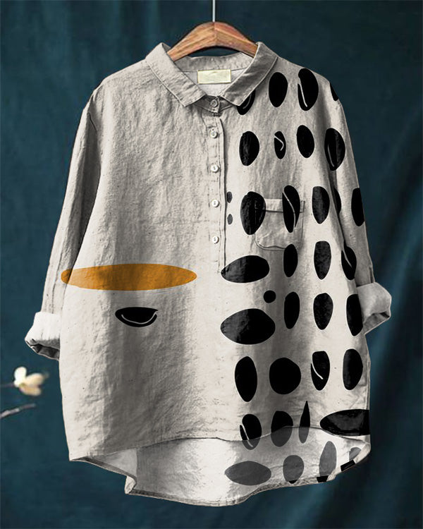 Vintage Abstract Art Polka Dot Print Casual Long Sleeve Shirt
