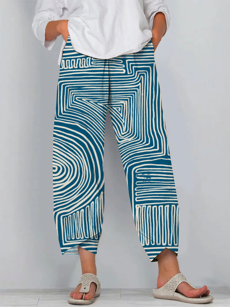 Retro Abstract Eye Art Loose Print Wide Leg Pants