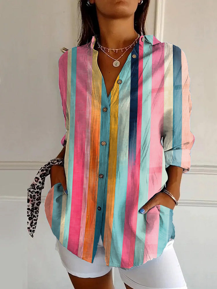 Vintage Colorful Striped Abstract Art Print Casual Long-sleeved Shirt