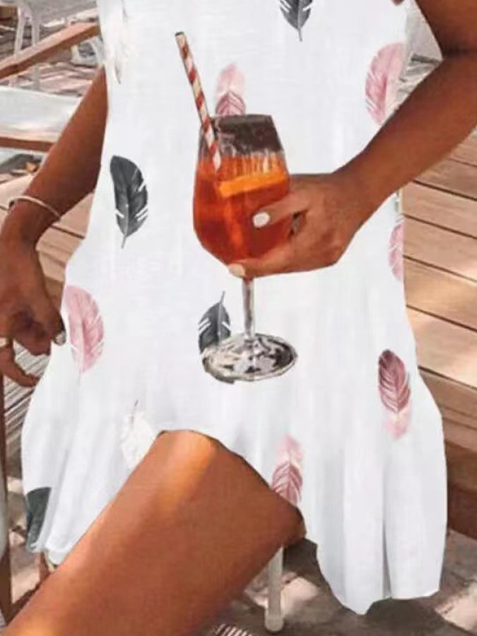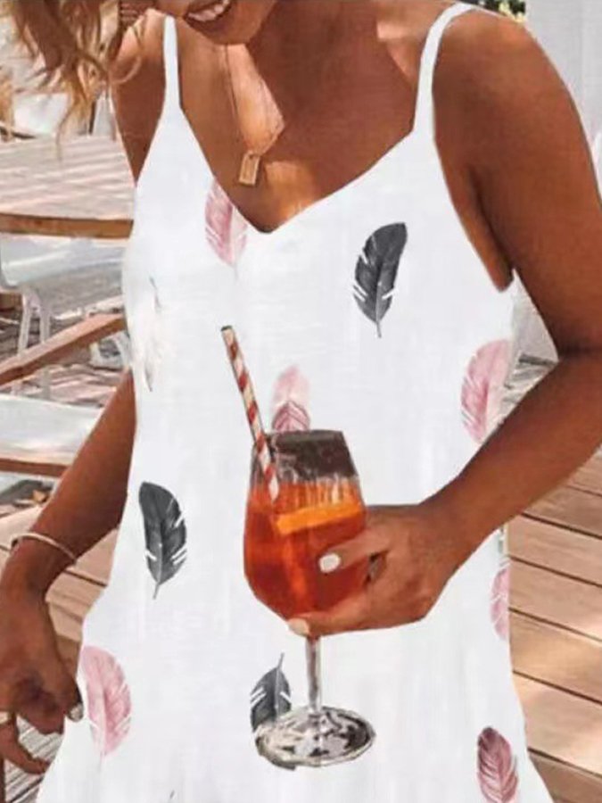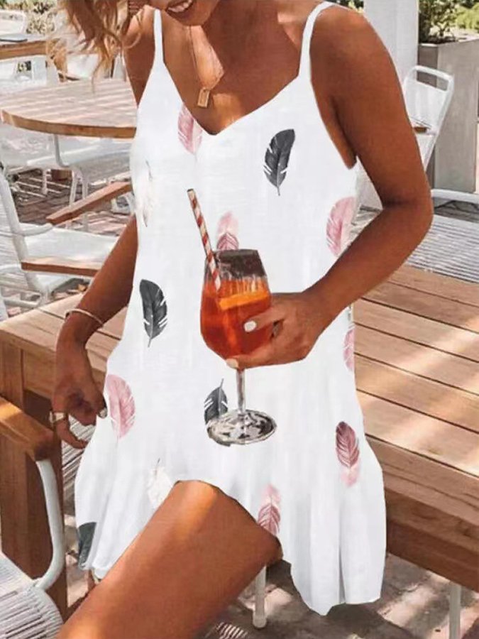 Feather Print Strap Beach Dress