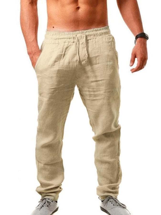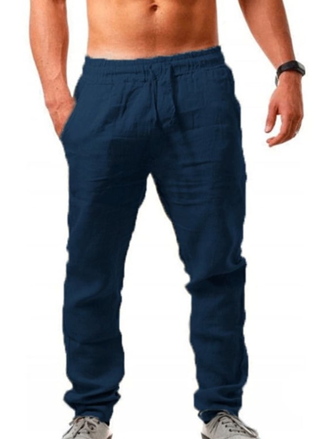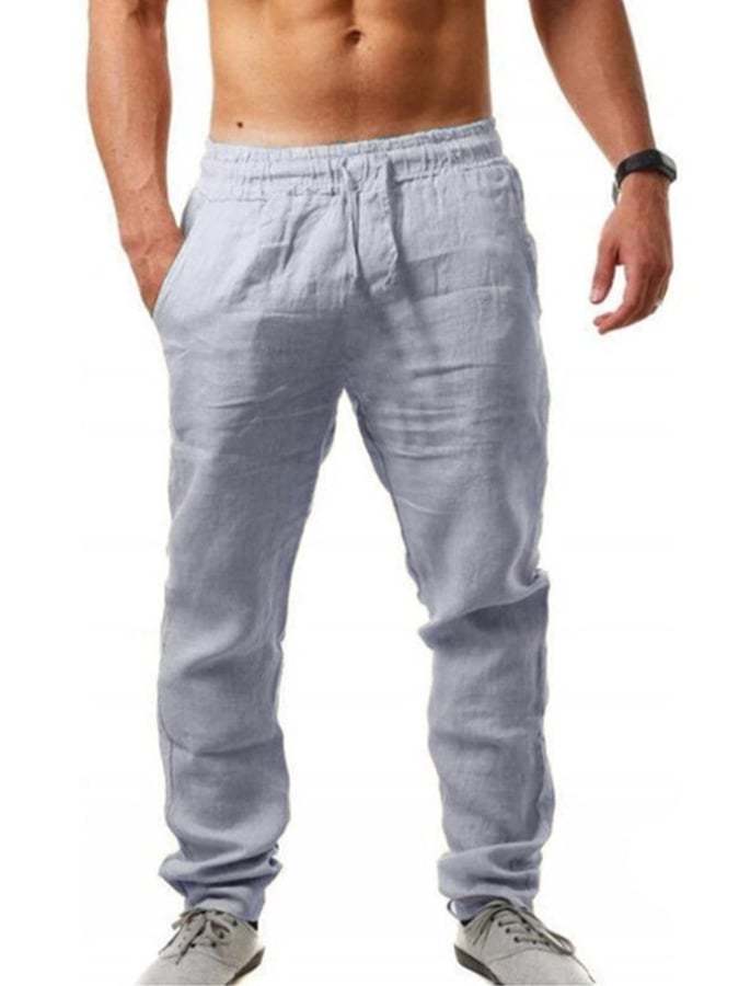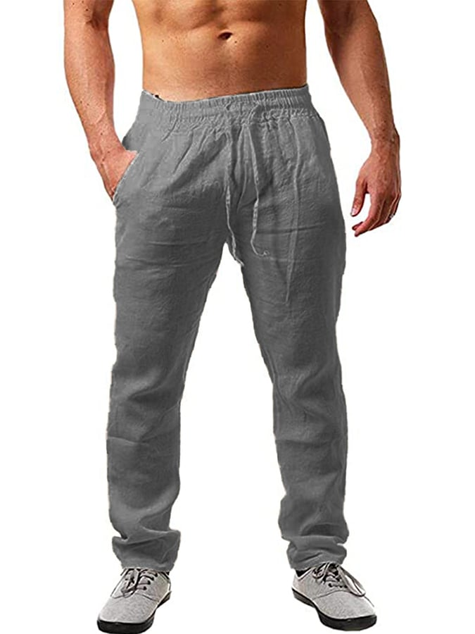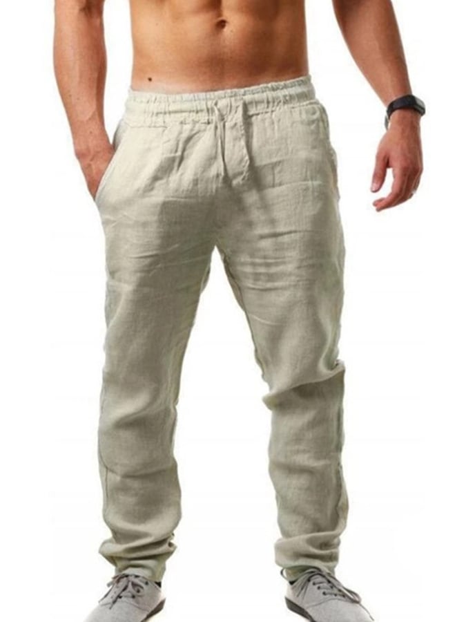 Men's Cotton Linen Drawstring Pocket Trousers