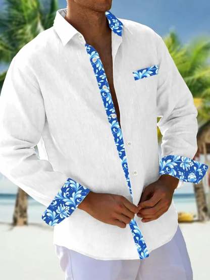 Men's Fashion Casual Contrast Color Long Sleeve Shirt
