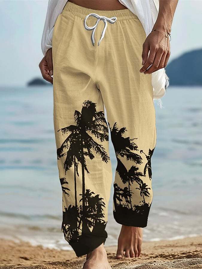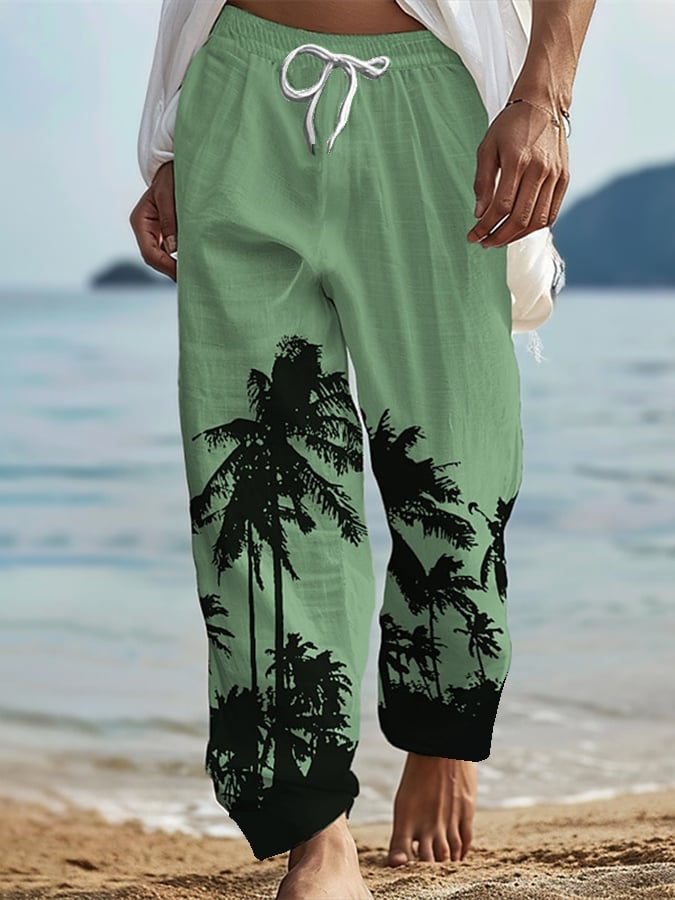 Men's Fashionable Resort Print Lace-Up Loose Casual Pants