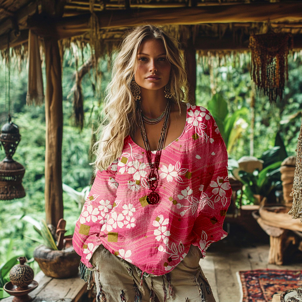 Pink Cherry Blossom Japanese Art Cozy Linen Shirt