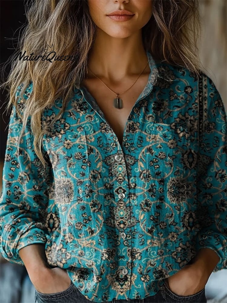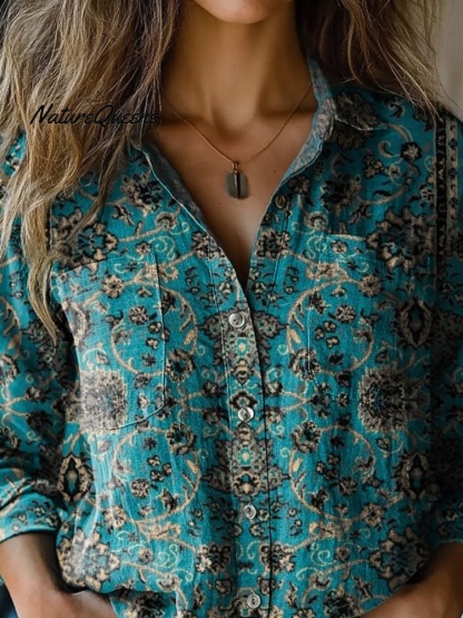 Retro Ethnic Pattern Printed Women's Casual Long Sleeve Comfortable Cotton Shirt
