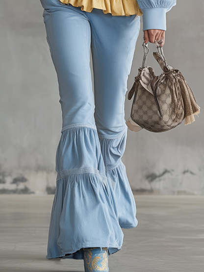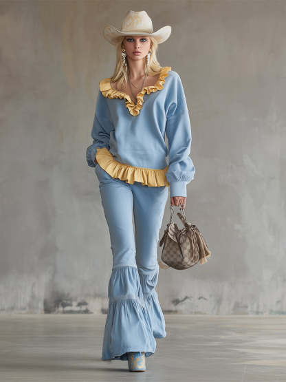 Stylish And Refreshing Blue Sweatshirt And Flared Pants Tracksuit