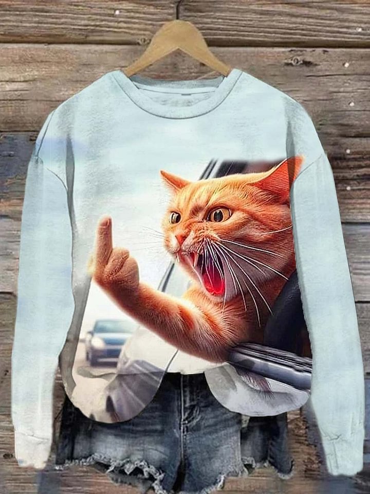 Funny Angry Cat Art Print Casaul T-shirt