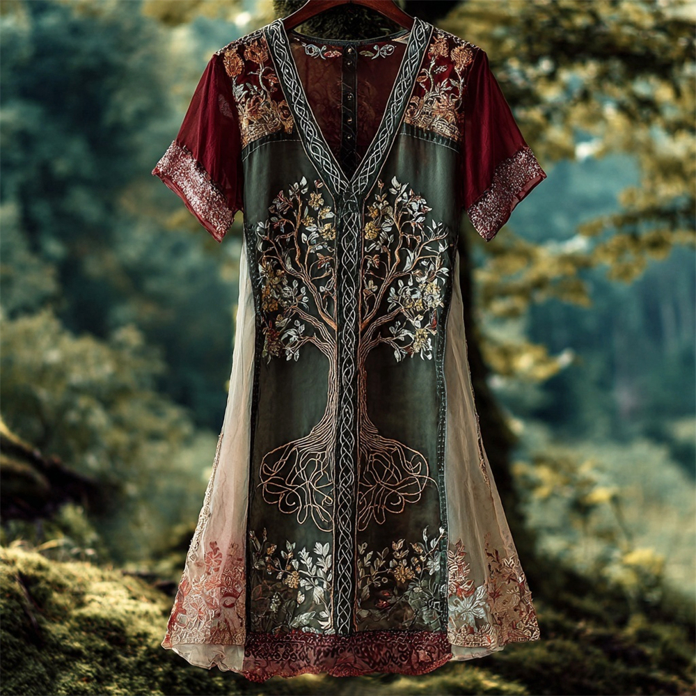 Vintage Viking Tree Of Life Women's V-neck Mini Dress