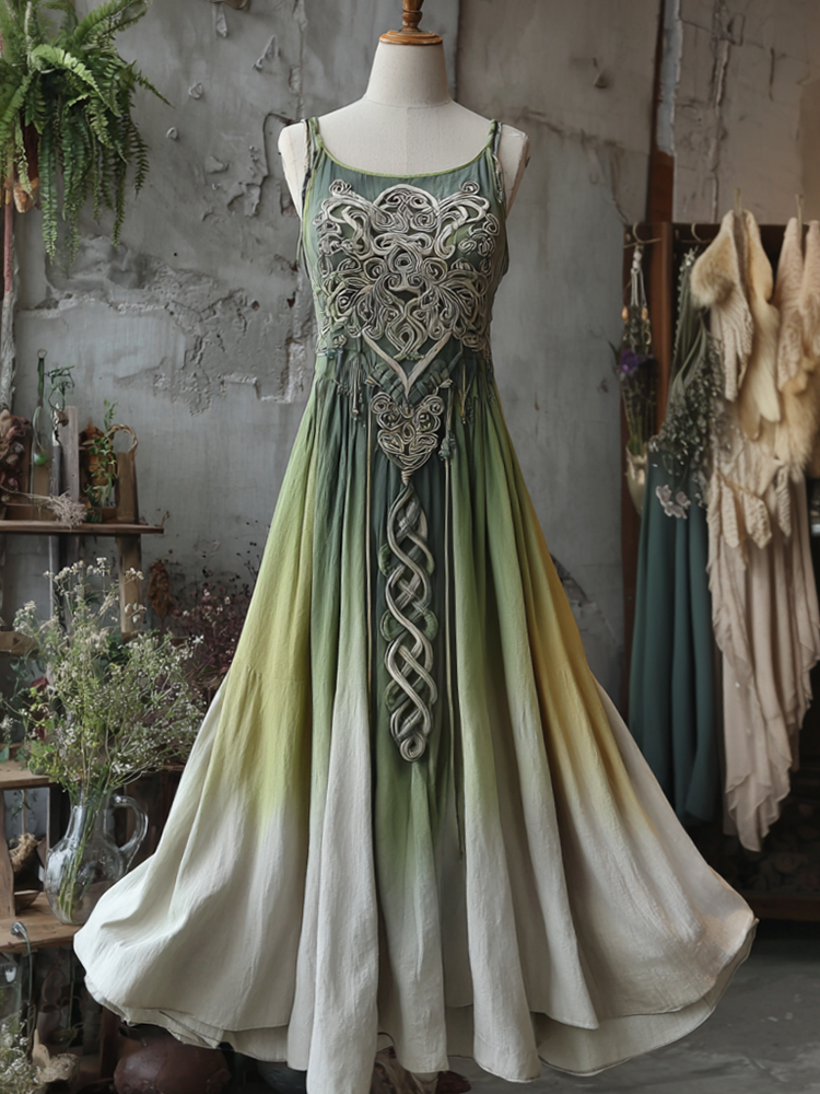 Women's Celtic Pattern Gradient Color Suspender Maxi Dress