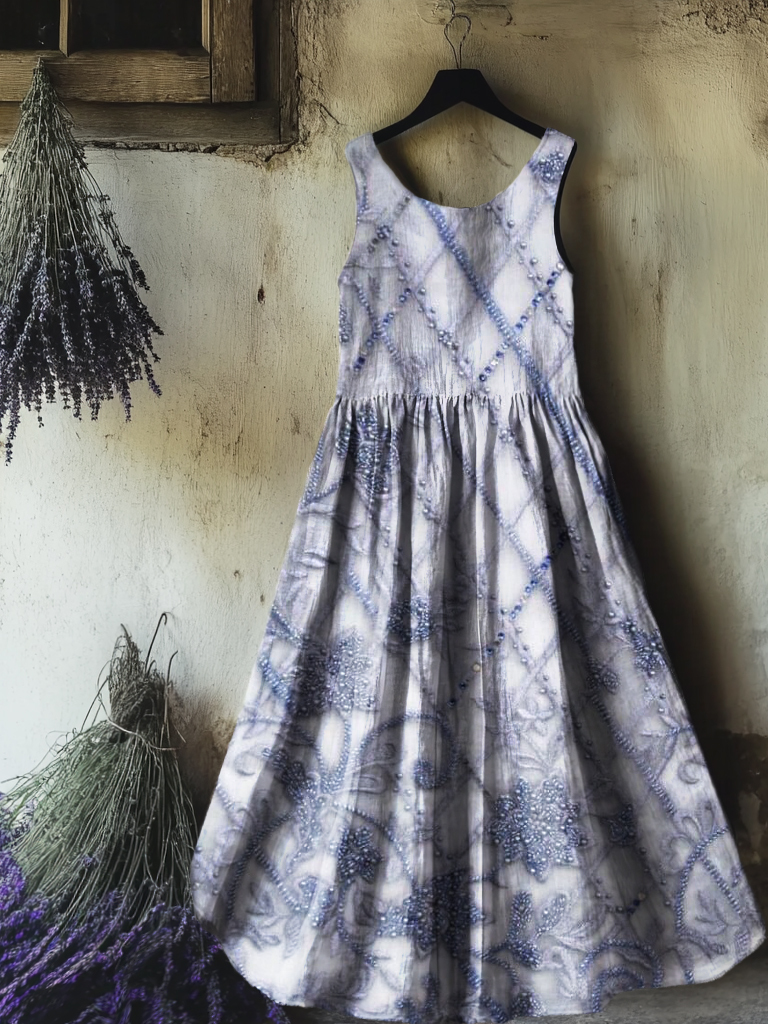 Women's Floral Art Print Round Neck Sleeveless Cotton Pocket Dresses
