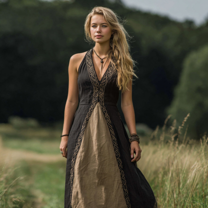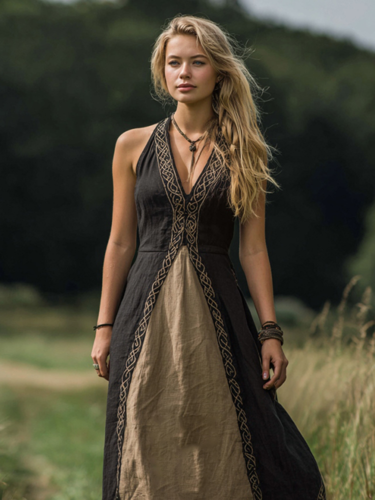 Women's Vintage Celtic Knot Patchwork Art Tank Maxi Dress
