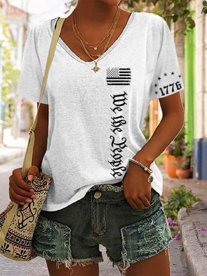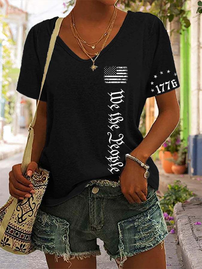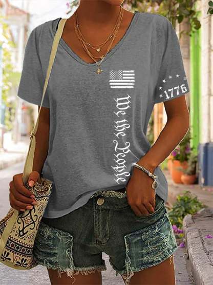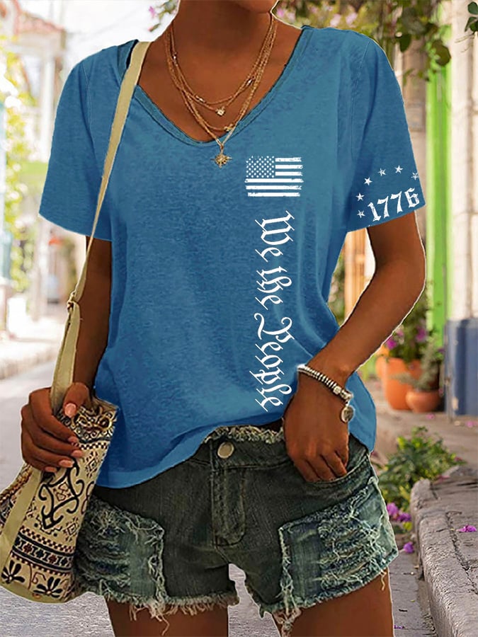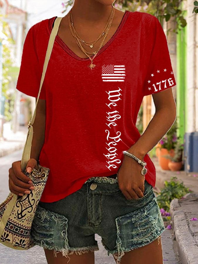Women's We The People Independence Day Printed V-Neck T-Shirt