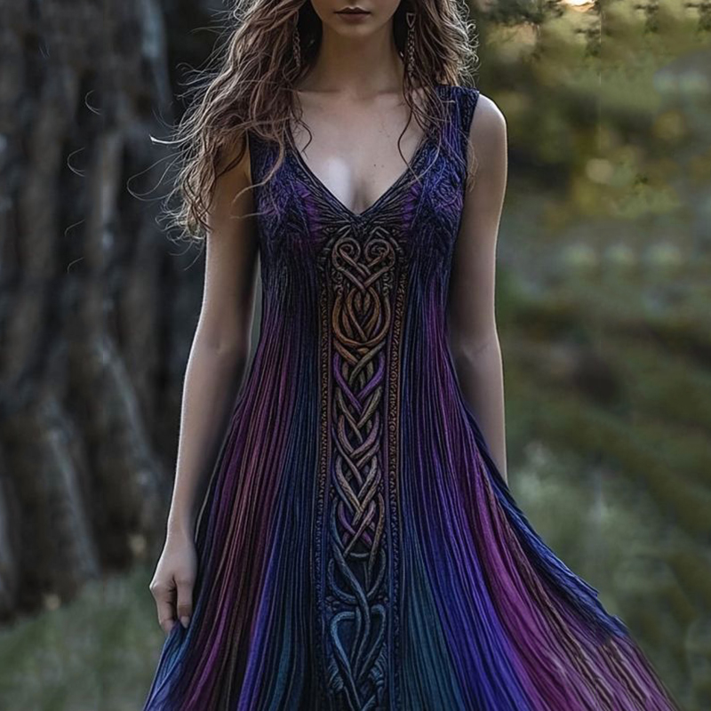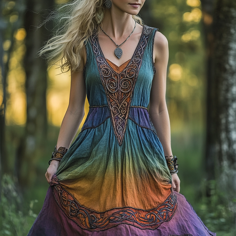 Women's Vintage Viking Celtic Knot Gradient Art Linen Vest Dress