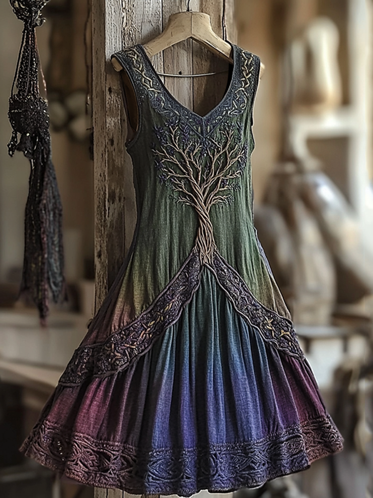Women's Vintage Viking Tree Of Life Gradient Linen Dress