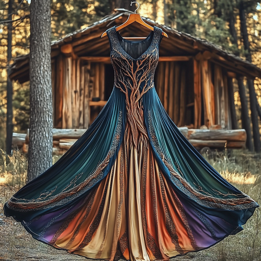 Women's Vintage Viking Tree Of Life Ombre Sleeveless Dress