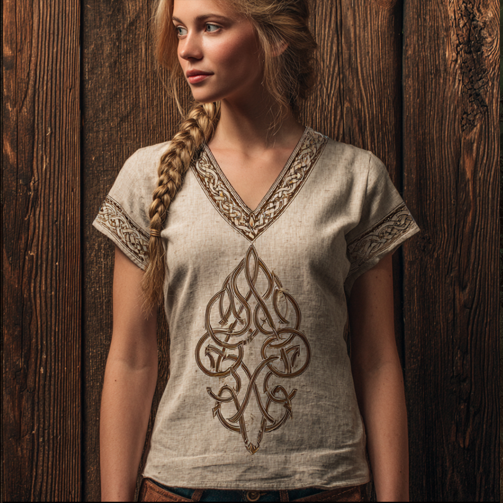 Vintage Viking Celtic Linen V-neck Basic Shirt