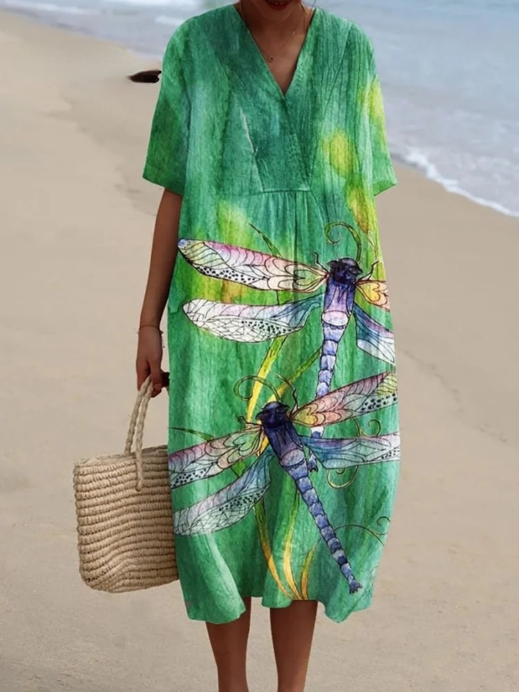 Women's Dragonfly Cat Art Print Casual Dress
