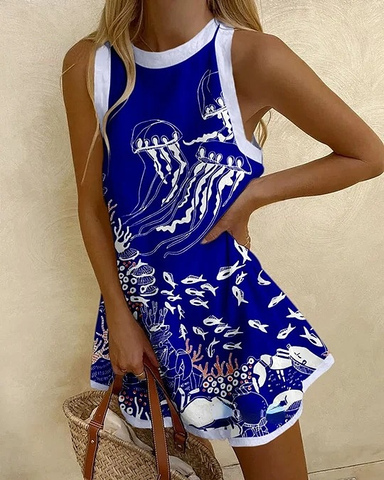 Stylish Ocean Print Mini Dress