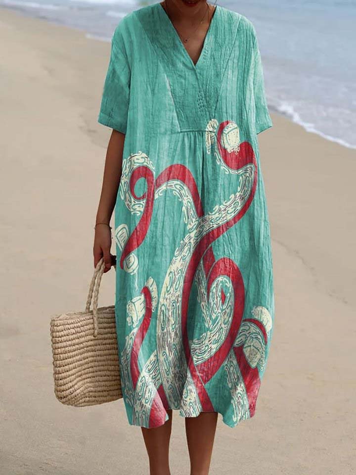 Women's Octopus Art Print Flowy Dress