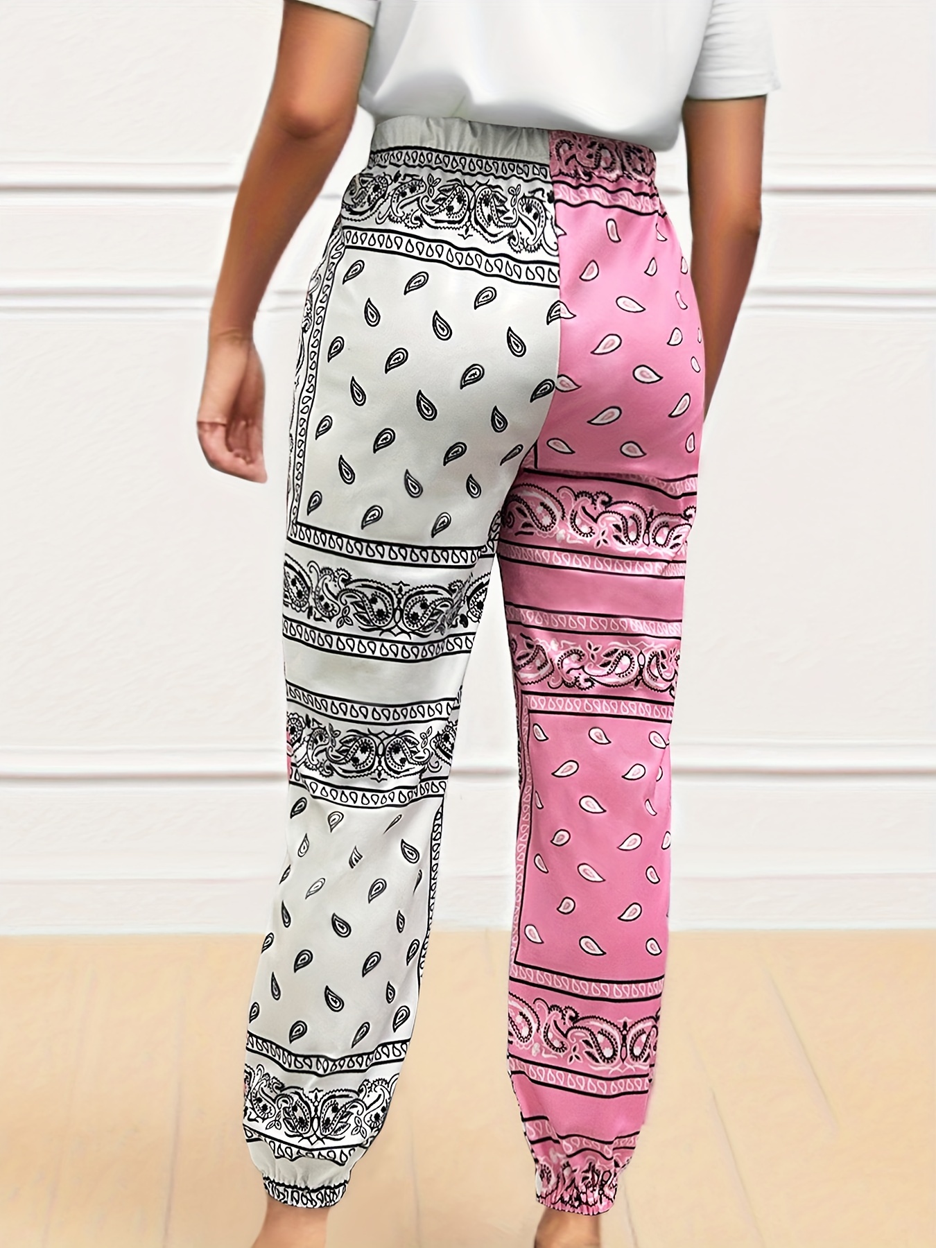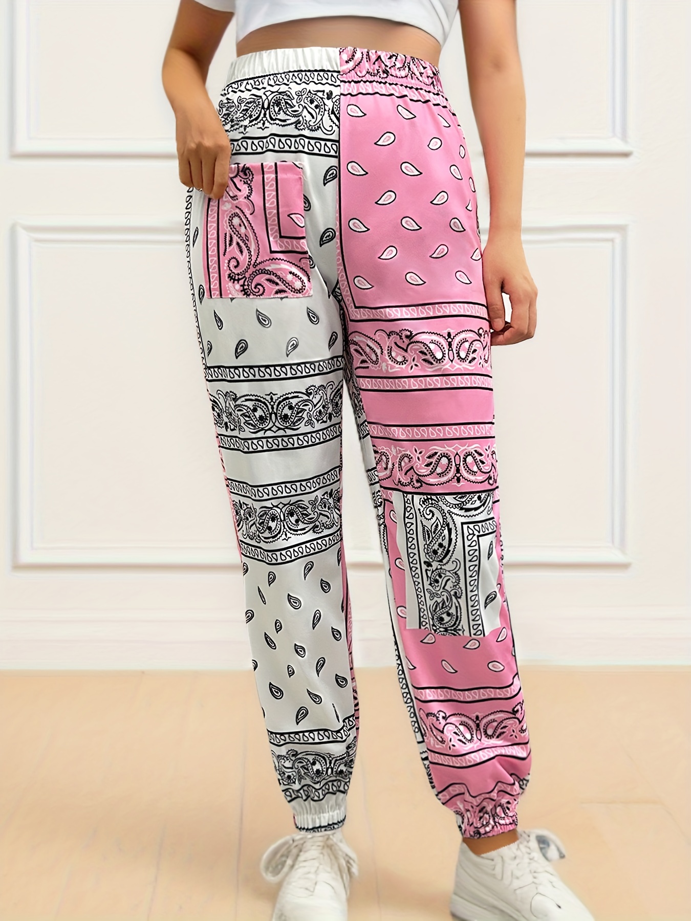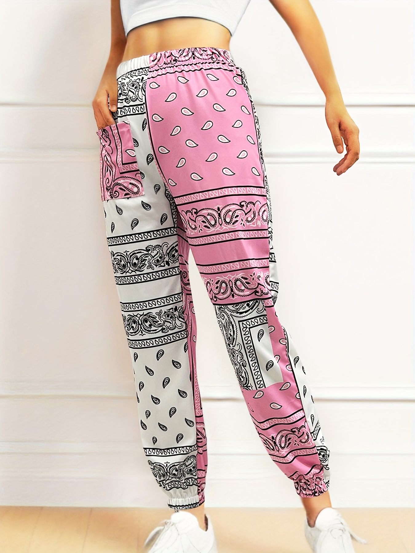 Allover Print Fitted Bottom Joggers, Casual Long Pants With Pockets For Spring & Summer, Women's Clothing