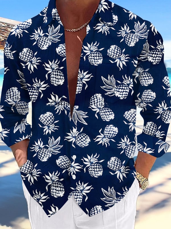 Men's Casual Hawaiian Pineapple Print Lapel Shirt