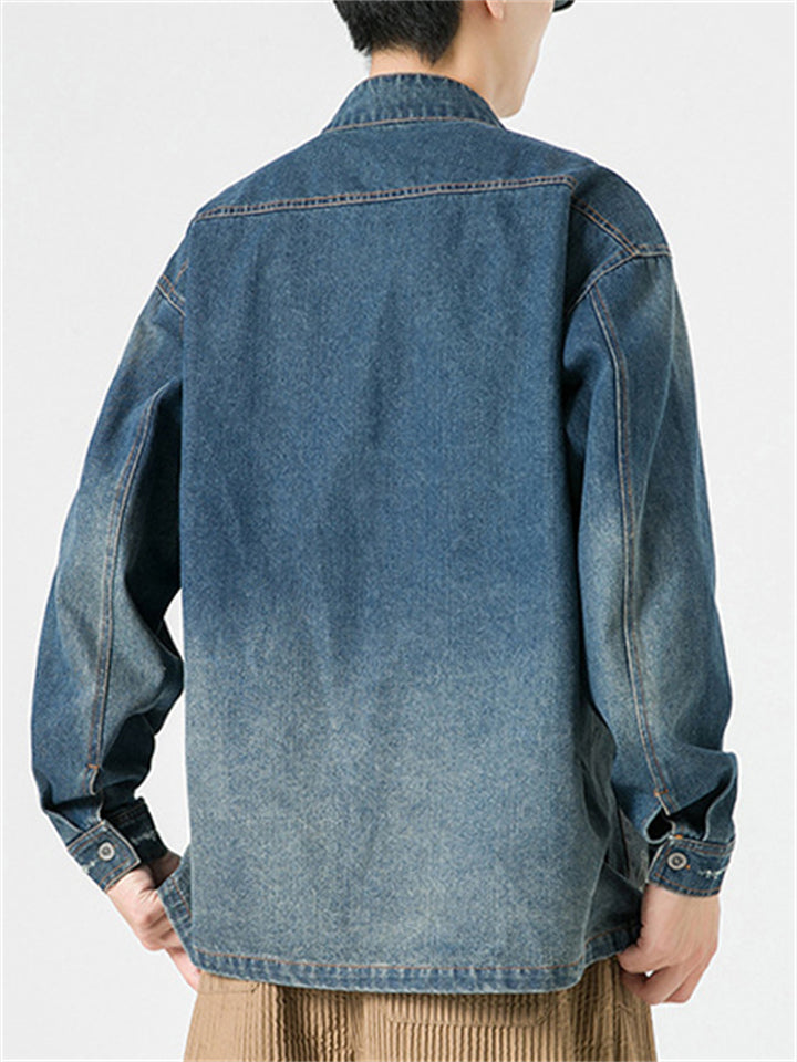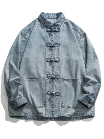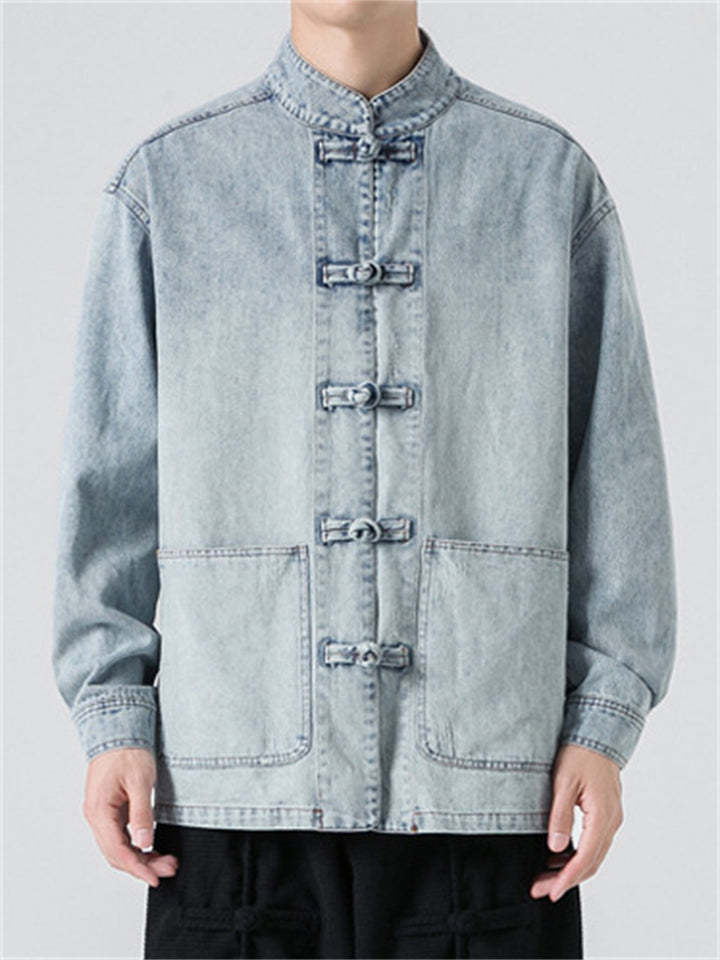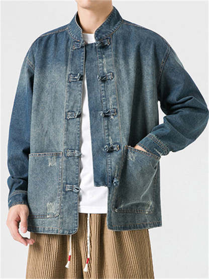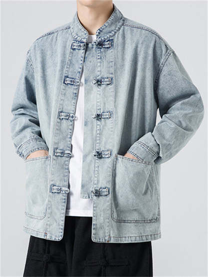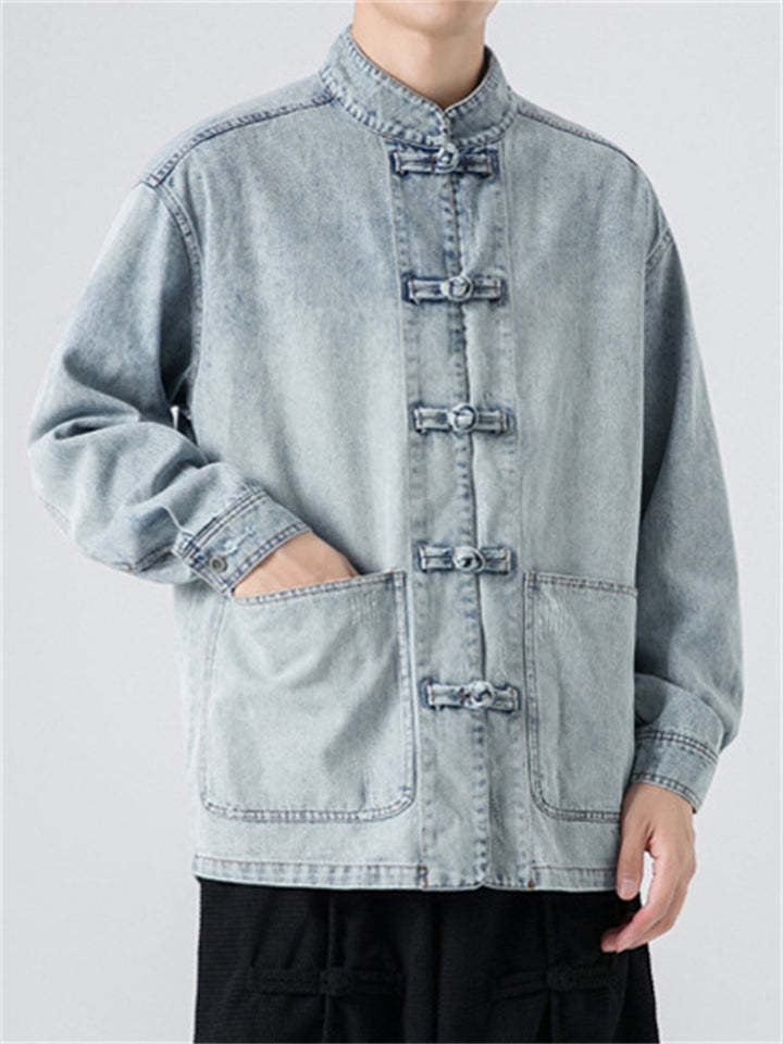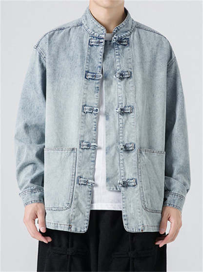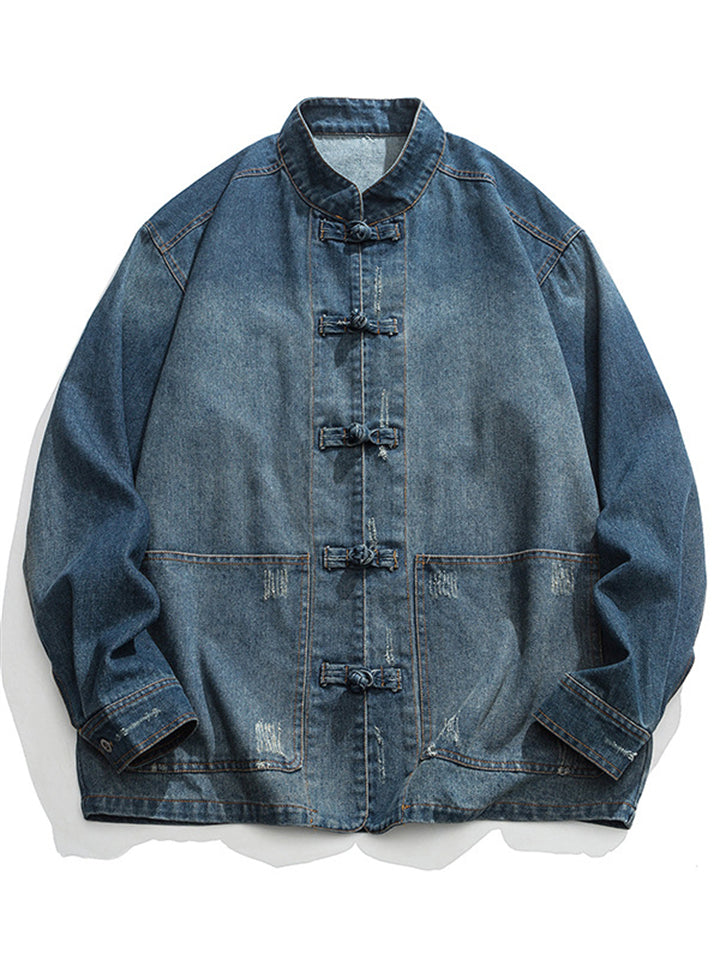 Men's Chinese Inspired Vintage Stand Collar Washed Denim Jacket