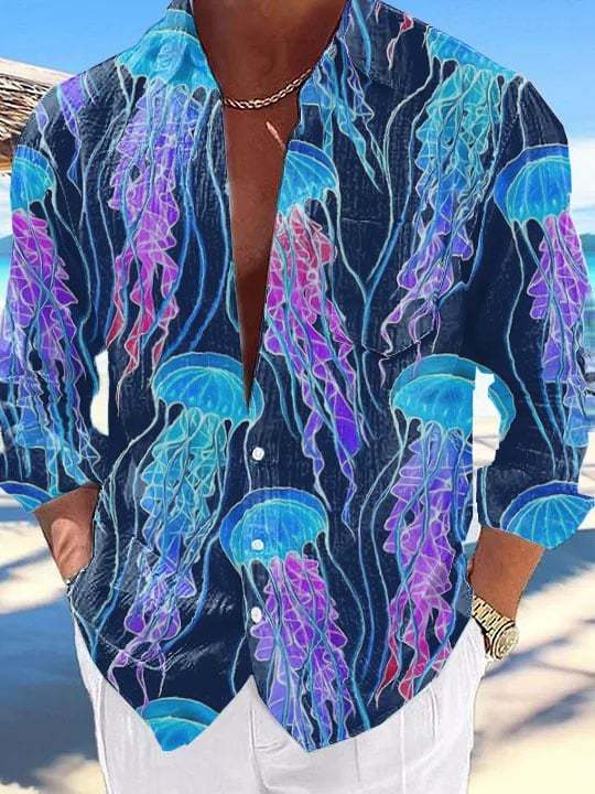 Men's Resort Beach Wave Floral Long Sleeve Shirt