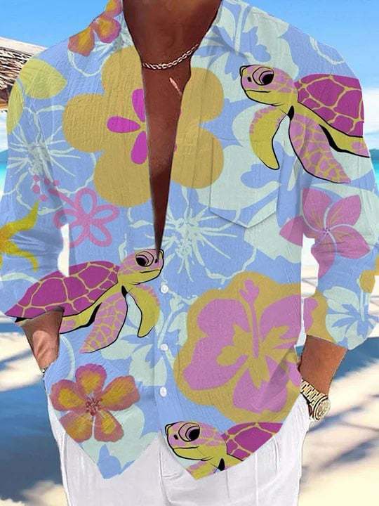 Men's Resort Beach Wave Floral Long Sleeve Shirt