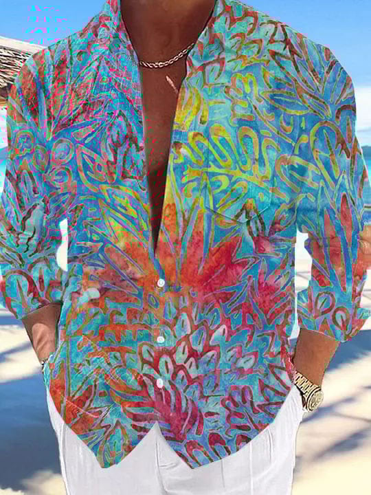 Men's Resort Beach Wave Floral Long Sleeve Shirt