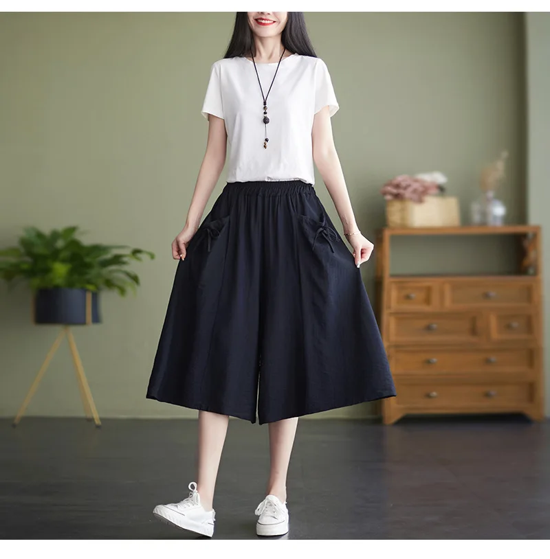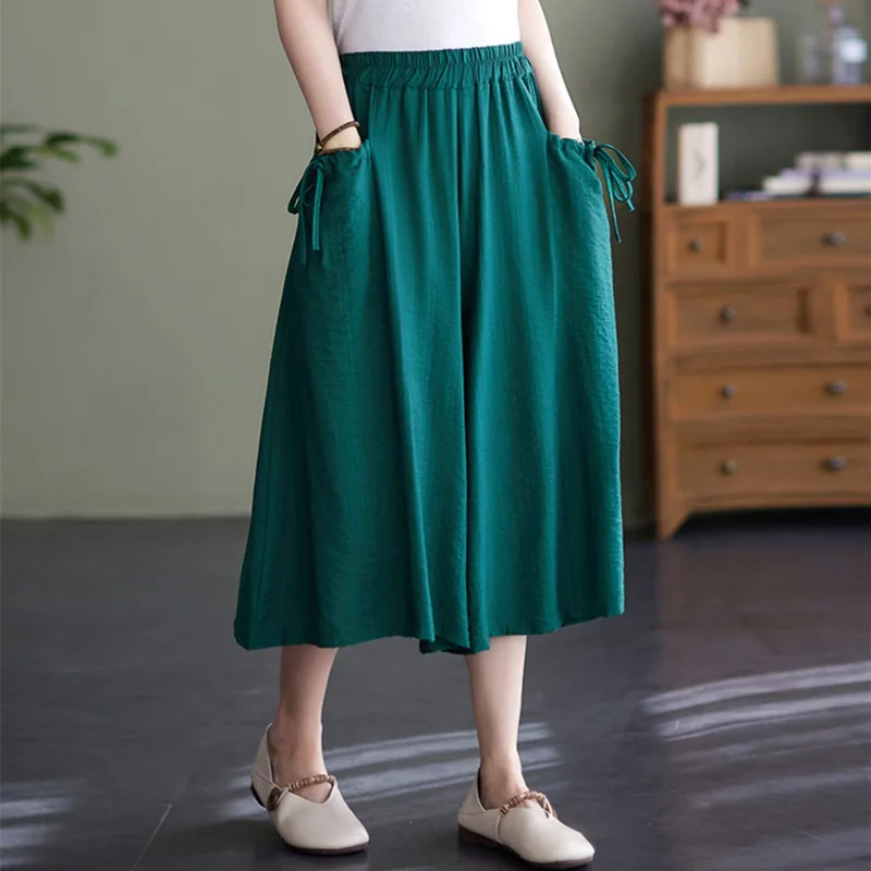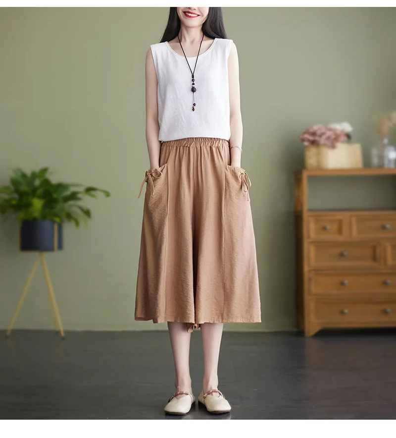 These Women's Elastic Waist Casual Cotton Linen Elegant Straight Solid Color Loose Wide Leg Pants are a perfect blend of comfort and style. Made from high-quality cotton and linen fabric, these pants offer a breathable and lightweight feel, making them ideal for everyday wear.Available in a variety of solid colors, these pants can effortlessly complement any outfit. Whether you're going for a casual look or dressing up for a special occasion, these pants are versatile enough to suit various styles.