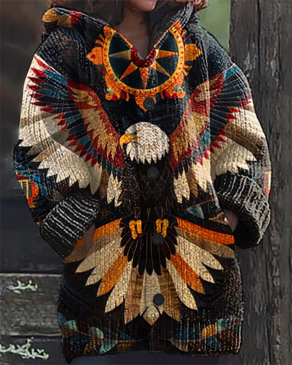 Vintage Eagle Native American Print Hooded Cardigan