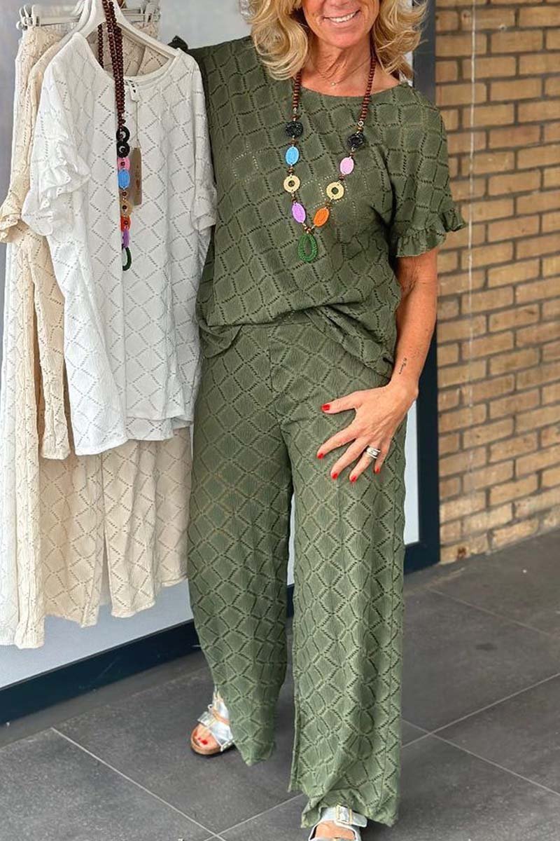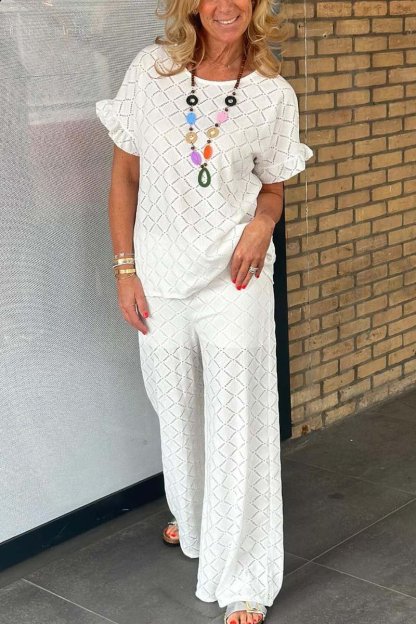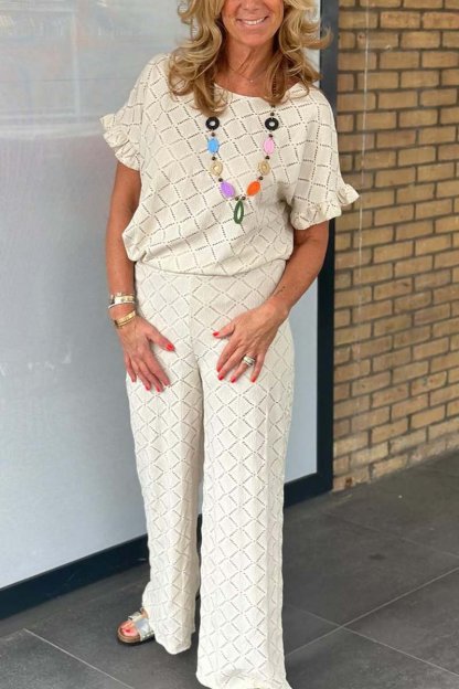 Women's casual hollow breathable knitted trousers two-piece set
