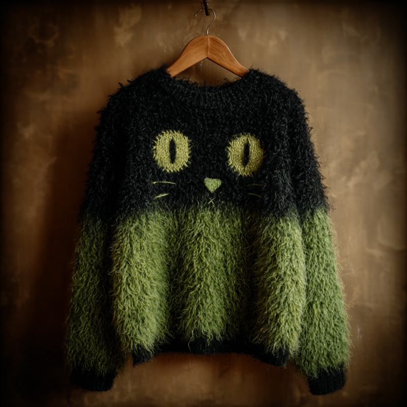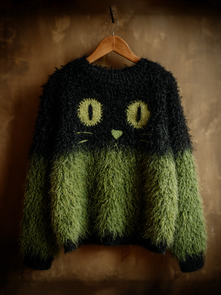 Women's Casual Vintage Halloween Black Cat Embroidered Sweater