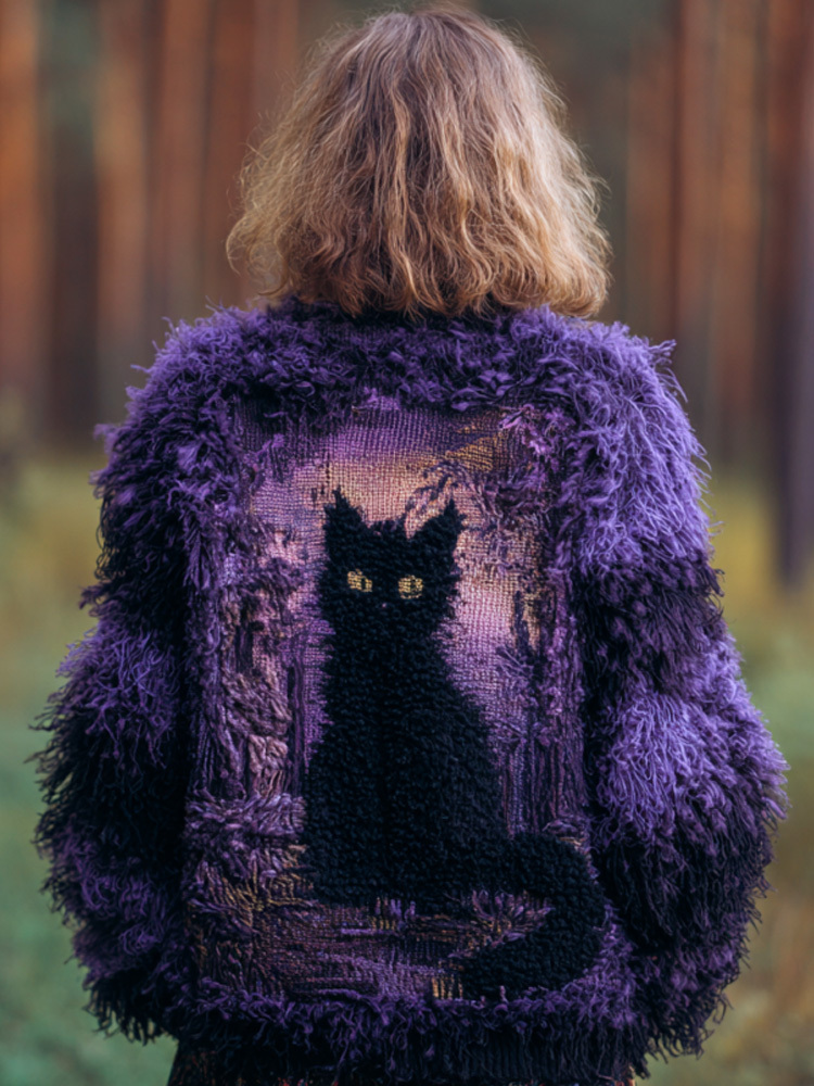 Women's Casual Vintage Halloween Black Cat Embroidered Sweater