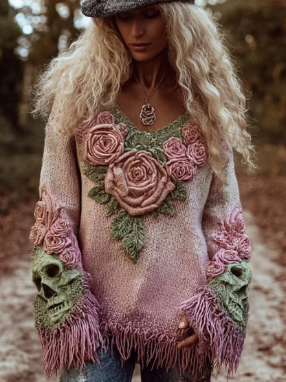 Women's Tie-dye Gradient Vintage Floral Skull Sweater