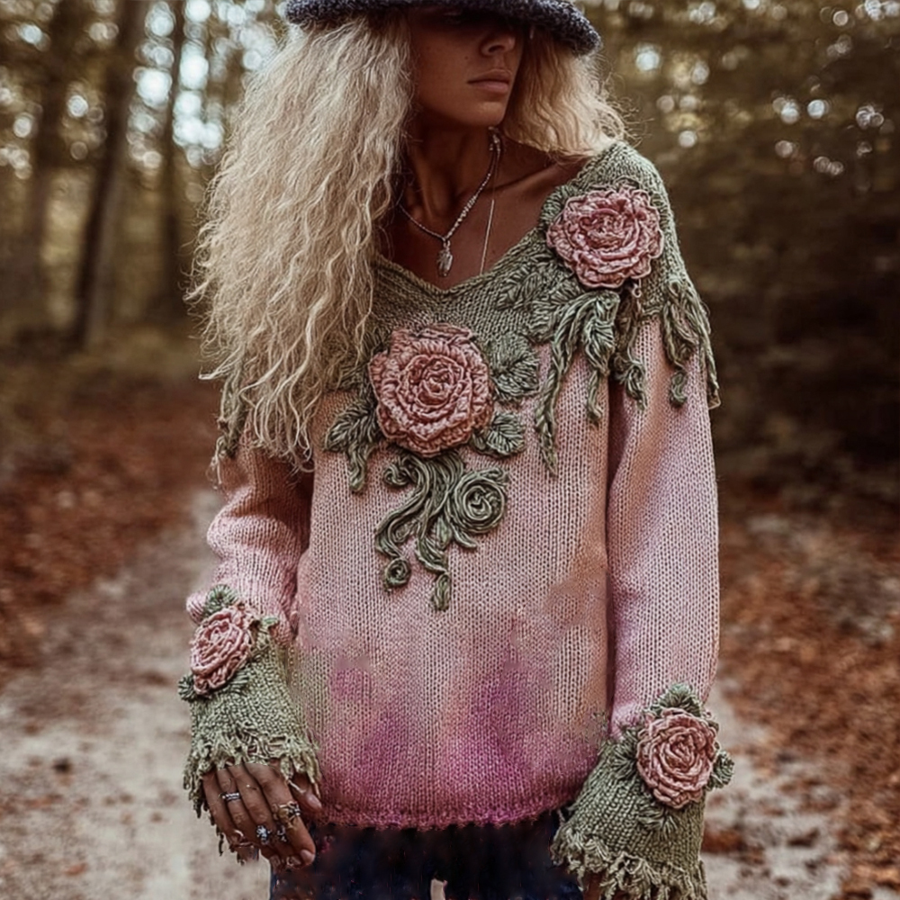 Women's Tie-dye Vintage Large Floral Warm Sweater