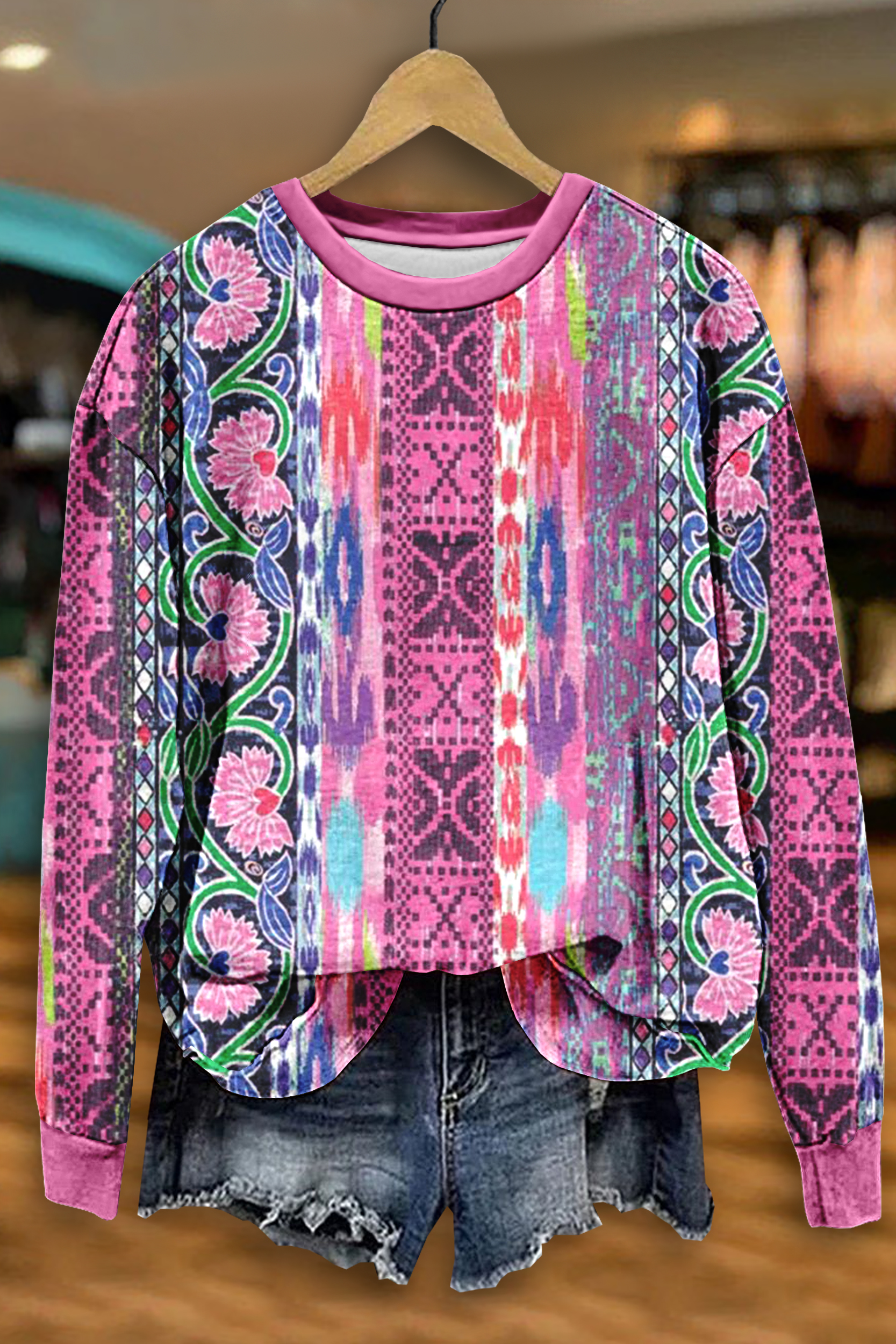 Women's Vintage Aztec Print Casual Sweatshirt