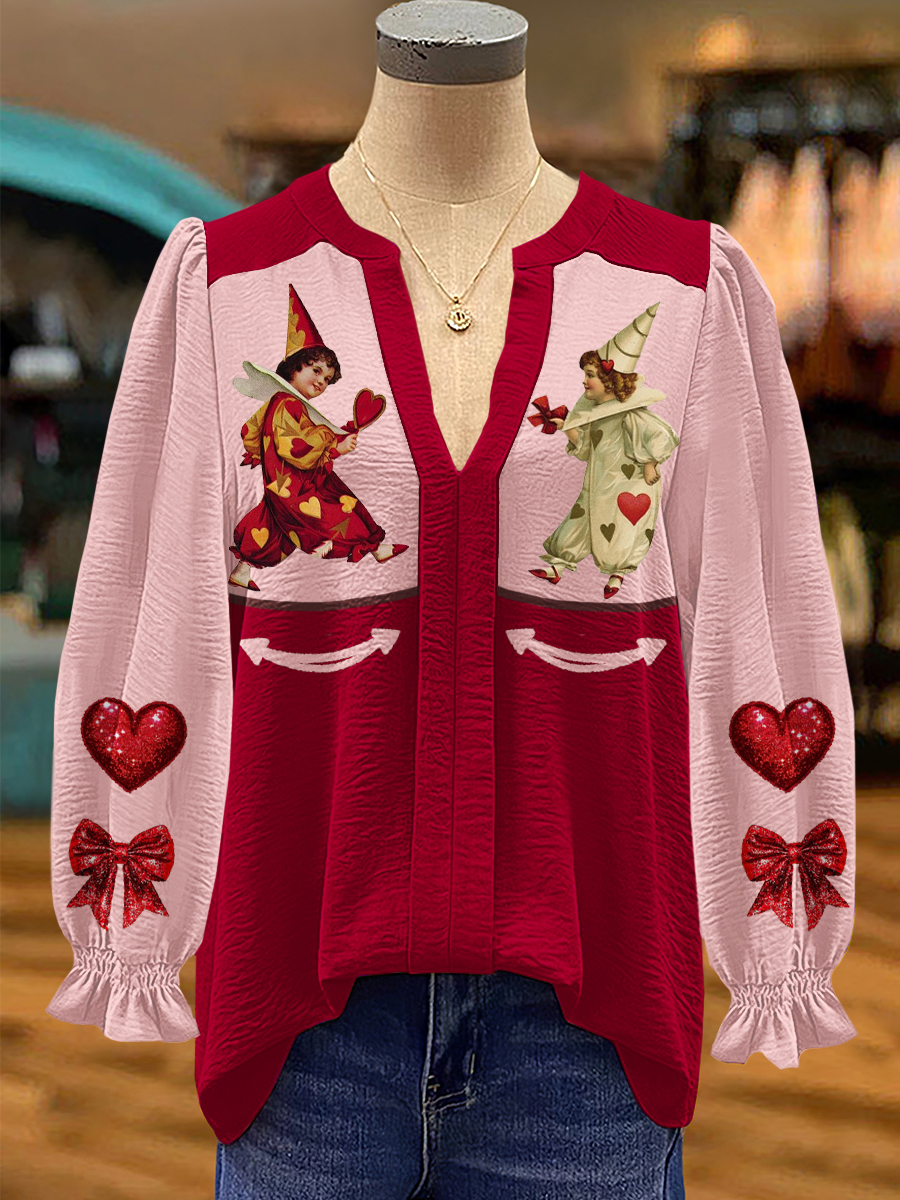 Women's Love Painting Art Print Casual Cotton And Linen Shirt