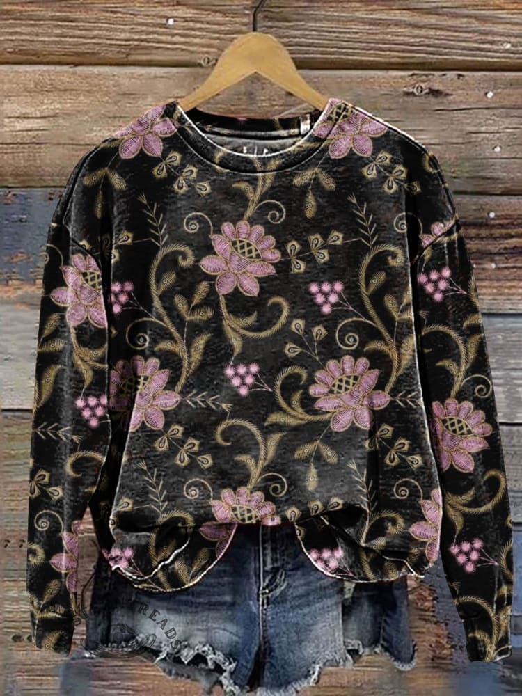Vintage Floral Art Print Casual Sweatshirt