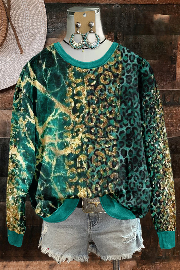 Chic Green Leopard Print Sweatshirt