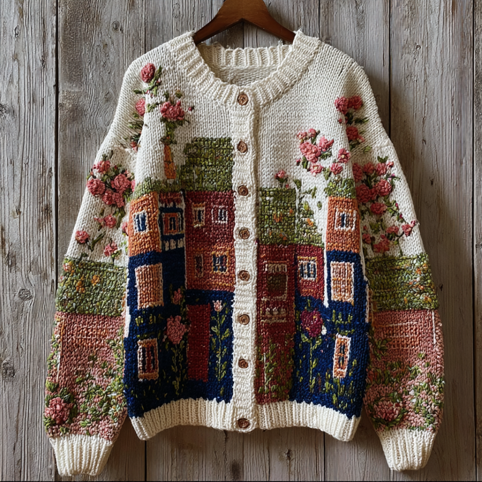 Bohemian Style Garden Pattern Design Women's Knitted Sweater Coat