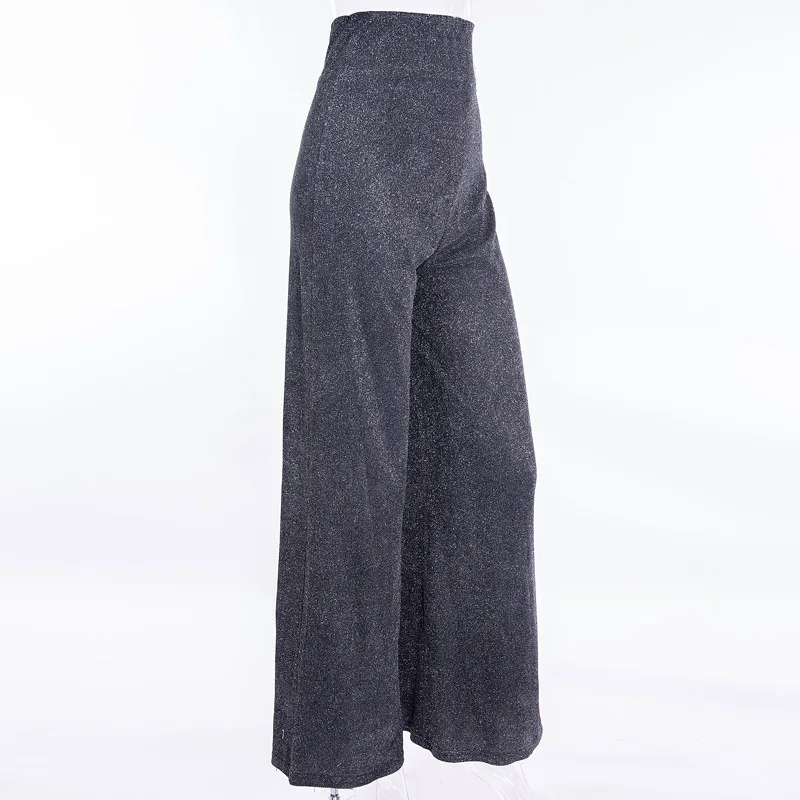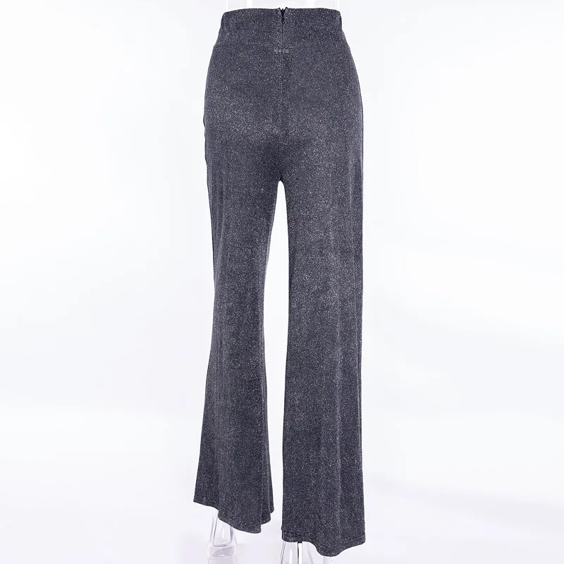 New Women's Party Solid Color High Waist Wide Leg Sequin Silver Flared Pants