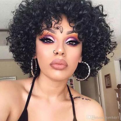 Short Bob Curly Hair Black Wave Wig With Bangs